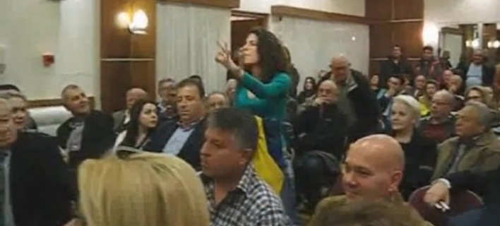 Εν μέσω της κατάμεστης αίθουσας, μία γυναίκα που βρισκόταν στο κοινό προπηλάκισε τον βουλευτή της ΝΔ, κατηγορώντας τον ότι λέει ψέματα και “στολίζοντάς” τον με διάφορα κοσμητικά επίθετα.