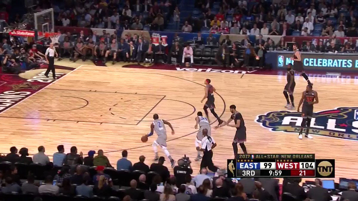 Ωστόσο, ο Giannis στην πρώτη ελληνική εκπροσώπηση στην ιστoρία των All Star φρόντισε να αποδείξει με την παρουσία του ότι ήρθε για να... μείνει (πρώτος σκόρερ της Ανατολής), προσφέροντας πλούσιο θέαμα, καθώς όλοι του οι πόντοι ήρθαν με καρφώματα... Στα highlight της βραδιάς; Η στιγμή στα πρώτα λεπτά της τρίτης περιόδου, όταν ο Στεφ Κάρι βλέποντας τον «Greek Freak» να... οργώνει το παρκέ... ξάπλωσε για να προστατευτεί, με τον Αντετοκούνμπο να ίπταται από πάνω του και να καρφώνει με δύναμη στο καλάθι.