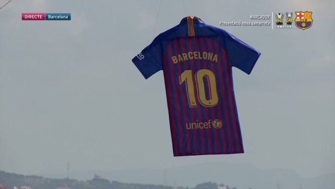 Η Μπαρτσελόνα επέλεξε να παρουσιάσει τη νέα της φανέλα με πολύ εντυπωσιακό τρόπο, αφού ήρθε κρεμασμένη από ένα drone, ενώ ένας δύτης βουτούσε ταυτόχρονα στην πισίνα.