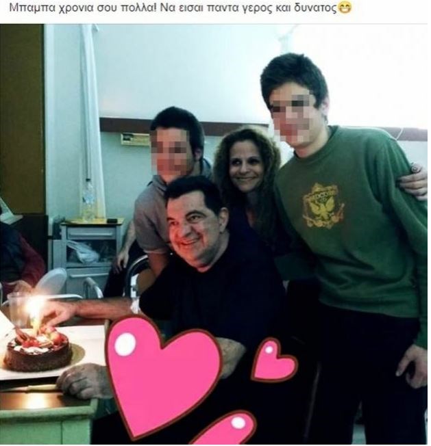 οικογένεια του.Ο ηθοποιός, ο οποίος νοσηλεύεται από την Τσικνοπέμπτη στον Ευαγγελισμό, αντίκρισε τους δύο γιους του να μπαίνουν στο δωμάτιο της κλινικής κρατώντας στα χέρια τους μία τούρτα με ένα κεράκι και να του τραγουδούν το “happy birthday”.