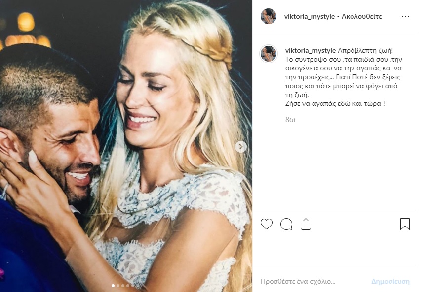 «Απρόβλεπτη ζωή! Το σύντροφό σου, τα παιδιά σου, την οικογένεια σου να την αγαπάς και να την προσέχεις… Γιατί Ποτέ δεν ξέρεις ποιος και πότε μπορεί να φύγει από τη ζωή. Ζήσε να αγαπάς εδώ και τώρα!» έγραψε ενώ σε άλλη ανάρτηση σημείωσε «31 Οκτωβρίου. Ένας χρόνος ίδιος πόνος»…