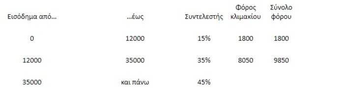 2. Δεύτερον, ο φόρος εισοδήματος από ενοίκια, υπολογίζεται με ξεχωριστή κλίμακα η οποία έχει την ακόλουθη μορφή: