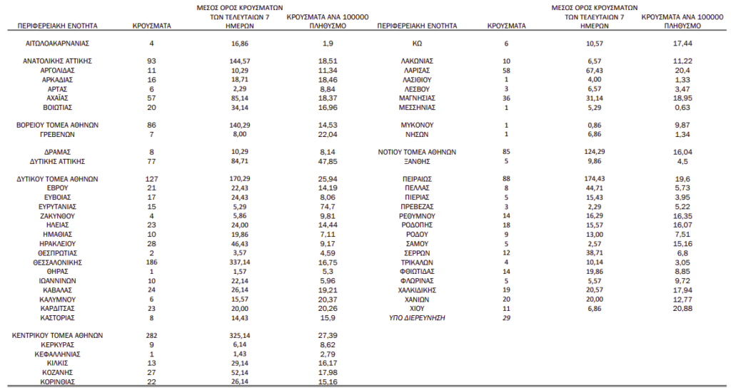 Η Αττική εξακολουθεί να κρατά τα “σκήπτρα” στον αριθμό των νέων μολύνσεων, καθώς στην περιφέρεια Αττικής, συμπεριλαμβανομένων των νησιών, καταγράφονται τα 839 από τα 1.718 νέα κρούσματα.