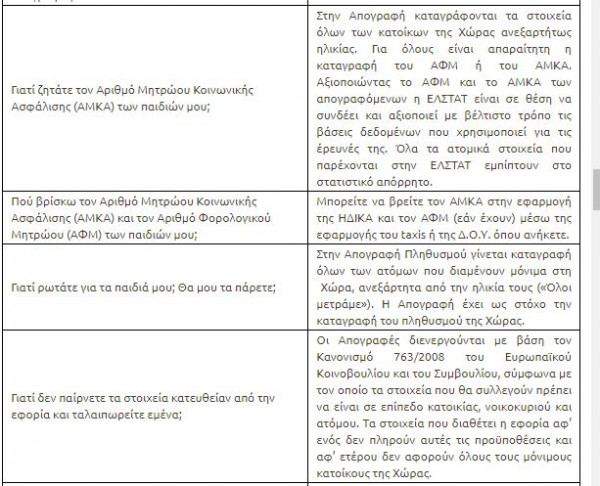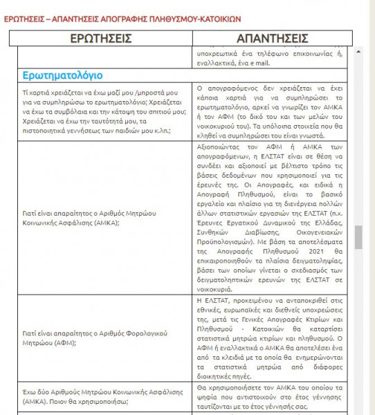 Χρήσιμες ερωτήσεις και απαντήσεις από την ΕΛΣΤΑΤ