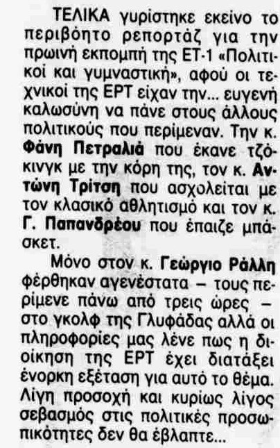 Τα προβλήματα συνεχίστηκαν. Τα συνεργεία δεν πήγαιναν στα θέματα ή όταν πήγαιναν δεν υπήρχαν μονταζιέρες για να μονταριστούν. Στη πρώτη κιόλας εκπομπή έστησαν για τρεις ολόκληρες ώρες τον πρώην πρωθυπουργό Γεώργιο Ράλλη σύμφωνα με δημοσίευμα από τον «Ελεύθερο Τύπο» της εποχής εκείνης.