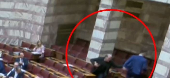 Σε φωτογραφίες από τους διαδρόμους της Βουλής, φαίνεται ο βουλευτής της Ελληνικής Λύσης να έχει πέσει στο έδαφος και παριστάμενοι να σπεύδουν προς το μέρος των δύο ανδρών για να τους κρατήσουν σε απόσταση.