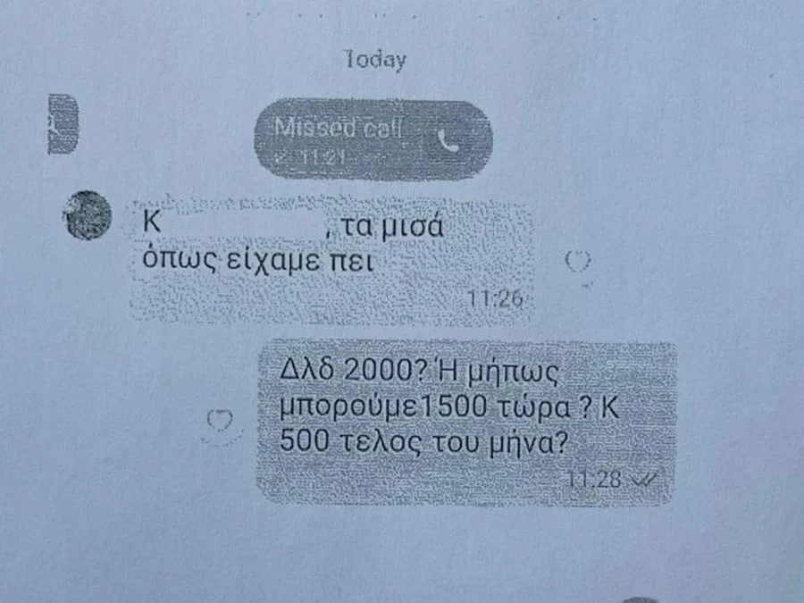 Η υπάλληλος, αμέσως μετά την έγκριση της αίτησης για την καταβολή του επιδόματος αναπηρίας, απέστειλε στην καταγγέλλουσα ένα μήνυμα στο οποίο της έγραψε: «Κ…, τα μισά όπως είχαμε πει».
