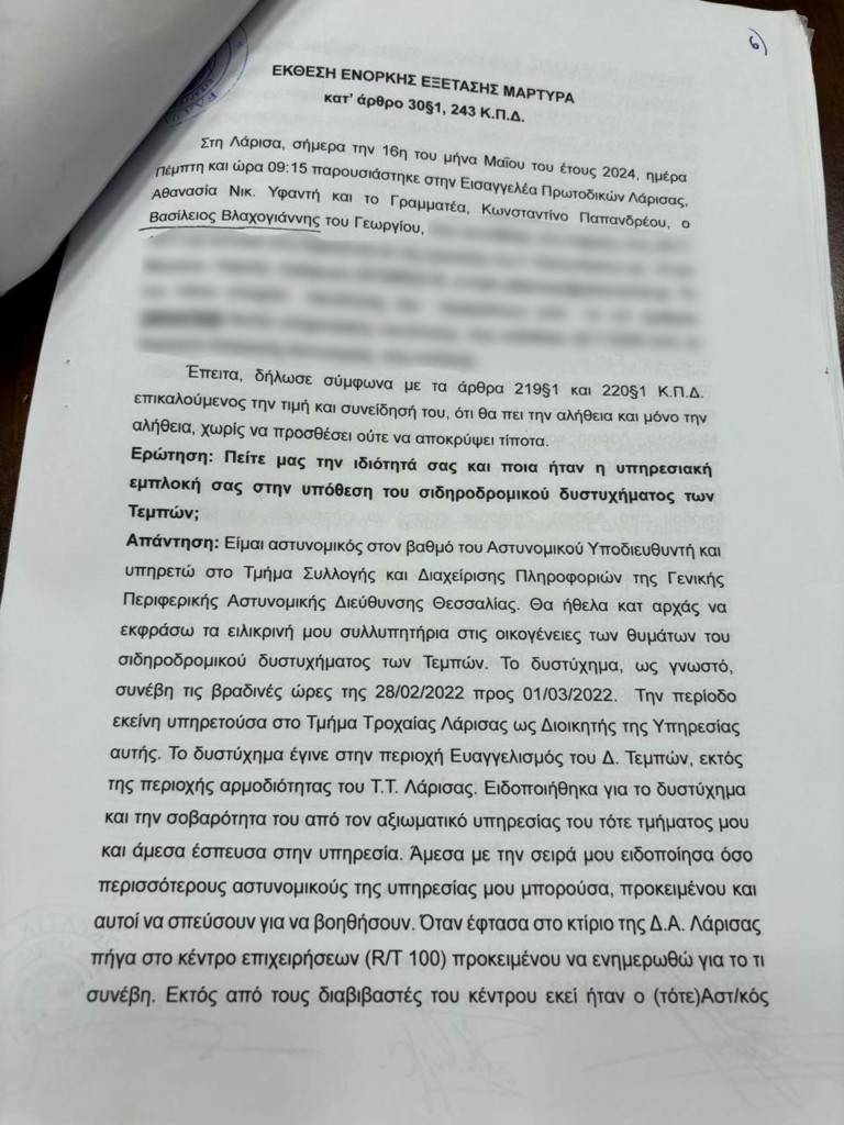 Σε αυτή τη δικογραφία, αναφέρονται πολιτικά πρόσωπα, όπως ο Χρήστος Τριαντόπουλος, ο οποίος μαζί με τον Κώστα Αγοραστό και τον γενικό γραμματέα του υπουργείου Μεταφορών, Ιωάννη Ξιφαρά «συμμετείχαν στις συσκέψεις, για το εγκληματικό μπάζωμα και την εξαφάνιση των πειστηρίων του δυστυχήματος και εγκλήματος», όπως αναφέρει και η Μαρία Καρυστιανού.