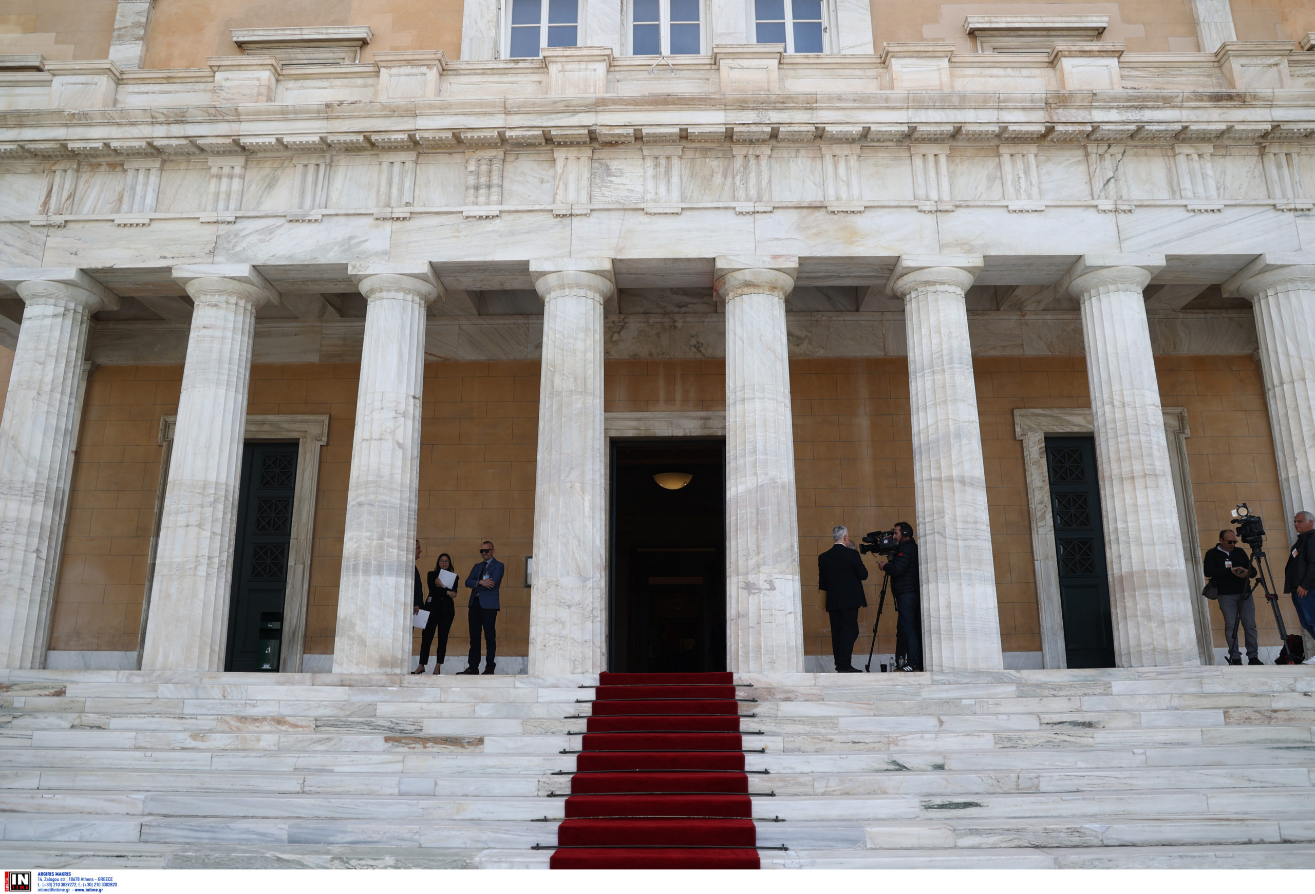 - Κυριάκος Μητσοτάκης και Νικήτας Κακλαμάνης περιμένουν στο Περιστύλιο της Βουλής τον Κωνσταντίνο Τασούλα