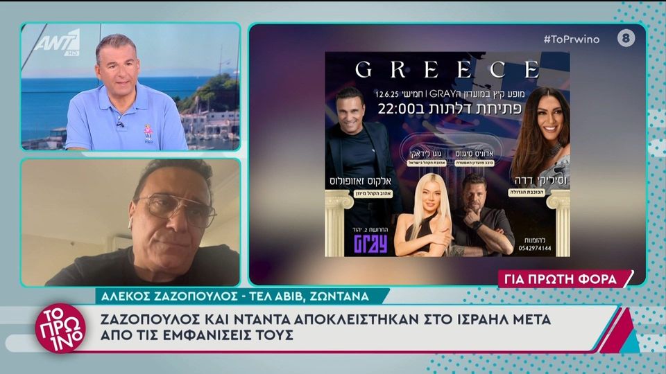 ο Αλέκος Ζαζόπουλος και η Βασιλική Νταντά έζησαν επίσης τον τρόμο, χωρίς να έχει γίνει γνωστό αν ήδη έχουν επιστρέψει στην Ελλάδα. Ο τραγουδιστής μίλησε, το πρωί της Παρασκευής, στον αέρα της εκπομπής Το Πρωινό και μετέφερε το κλίμα που επικρατεί. Όπως εξήγησε, όλες οι πτήσεις έχουν ακυρωθεί και οι ίδιοι έχουν επιστρέψει στο ξενοδοχείο όπου διαμένουν, ενώ ήδη τους έχουν υποδείξει τους χώρους καταφυγίων στους οποίους πρέπει να καταφύγουν εφόσον ηχήσουν οι σειρήνες λόγω επικείμενης επίθεσης. «Ανησυχώ, σκέφτομαι την οικογένειά μου και τα παιδιά μου. Πήγαμε στο αεροδρόμιο και μας ενημέρωσαν για την ακύρωση πτήσεων. Έχει διακοπεί κάθε πτήση. Είμαστε σε αναμονή. Βρίσκομαι στο ξενοδοχείο και, όταν ηχήσουν οι σειρήνες, θα κατέβουμε στο υπόγειο που υπάρχει καταφύγιο», τόνισε.