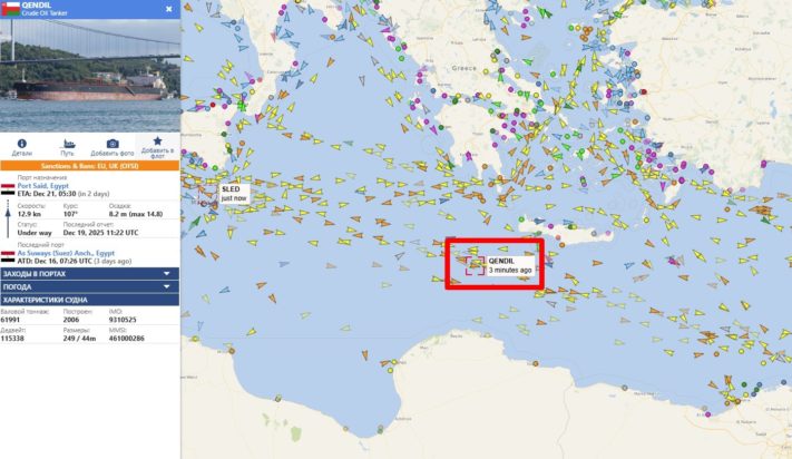 «Η SBU έπληξε με μη επανδρωμένα εναέρια οχήματα ένα πετρελαιοφόρο του ρωσικού αποκαλούμενου ‘σκιώδους στόλου’, το QENDIL. Η Ρωσία χρησιμοποιούσε αυτό το πετρελαιοφόρο για να παρακάμπτει τις κυρώσεις» και να χρηματοδοτεί «τον πόλεμό της εναντίον της Ουκρανίας», ανέφερε η πηγή της SBU.