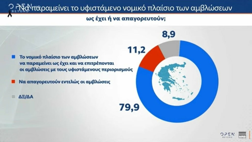 Μεγάλο ποσοστό διαφωνίας με τις απόψεις Καρυστιανού για τις αμβλώσεις καταγράφει η δημοσκόπηση, ενώ, επίσης η συντριπτική πλειοψηφία των πολιτών θεωρεί ότι το υφιστάμενο νομικό πλαίσιο πρέπει να παραμείνει ως έχει.