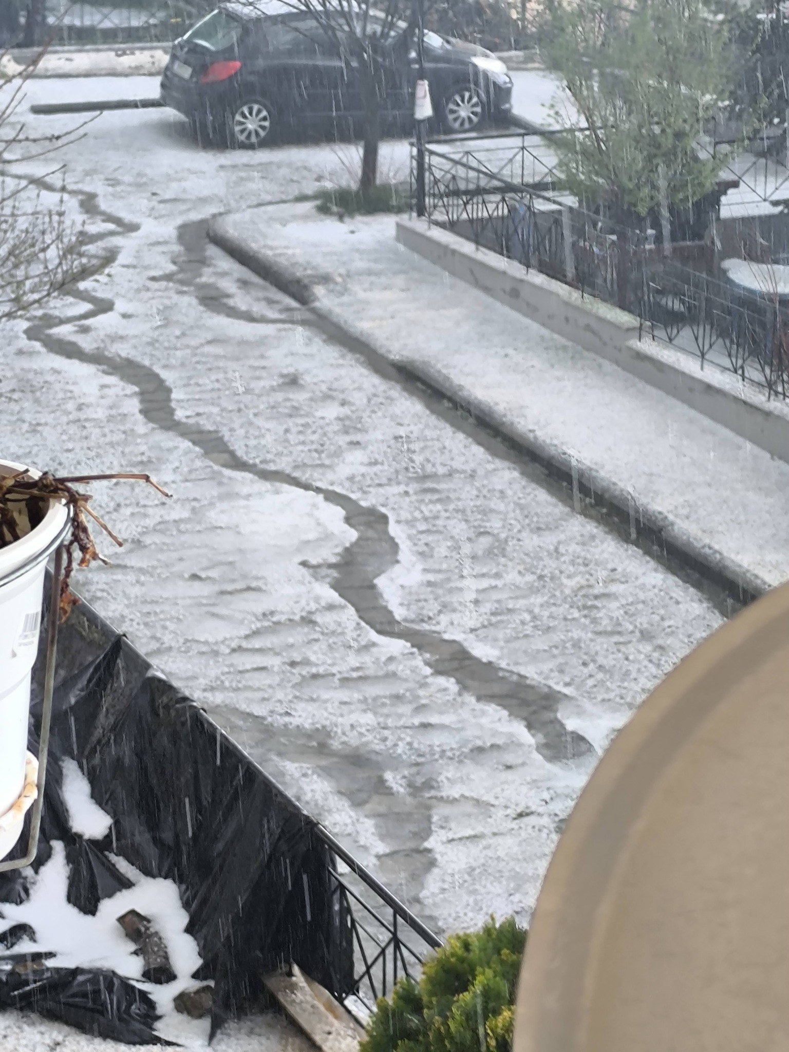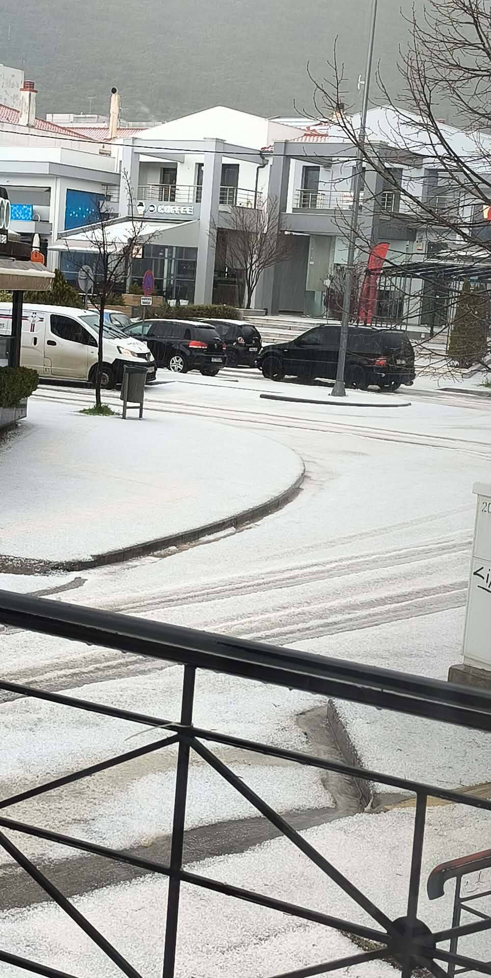 Μια ξαφνική και ιδιαίτερα έντονη χαλαζόπτωση «χτύπησε» πριν από λίγο τον Πολύγυρο Χαλκιδικής, καλύπτοντας δρόμους και αυλές σαν να είχε πέσει... χιόνι. Το φαινόμενο συνοδεύτηκε από δυνατό άνεμο και συνεχή βροχή, η οποία εξακολουθεί να βρίσκεται σε εξέλιξη.