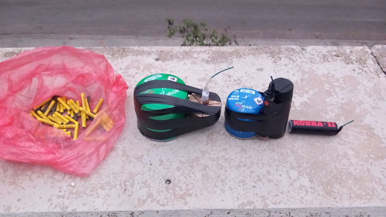 Μέσα σε σακίδιο που είχε στην κατοχή του βρέθηκαν 2 εκρηκτικοί μηχανισμοί καθώς και γκαζάκια με κροτίδες.