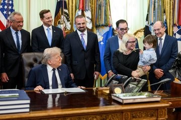 Κατά τη διάρκεια της εκδήλωσης, ο Τραμπ αναφέρθηκε στις εξελίξεις στην ιατρική και στην πρόσφατη έγκριση από τον FDA γονιδιακής θεραπείας της εταιρείας Regeneron για σπάνιες μορφές κώφωσης.