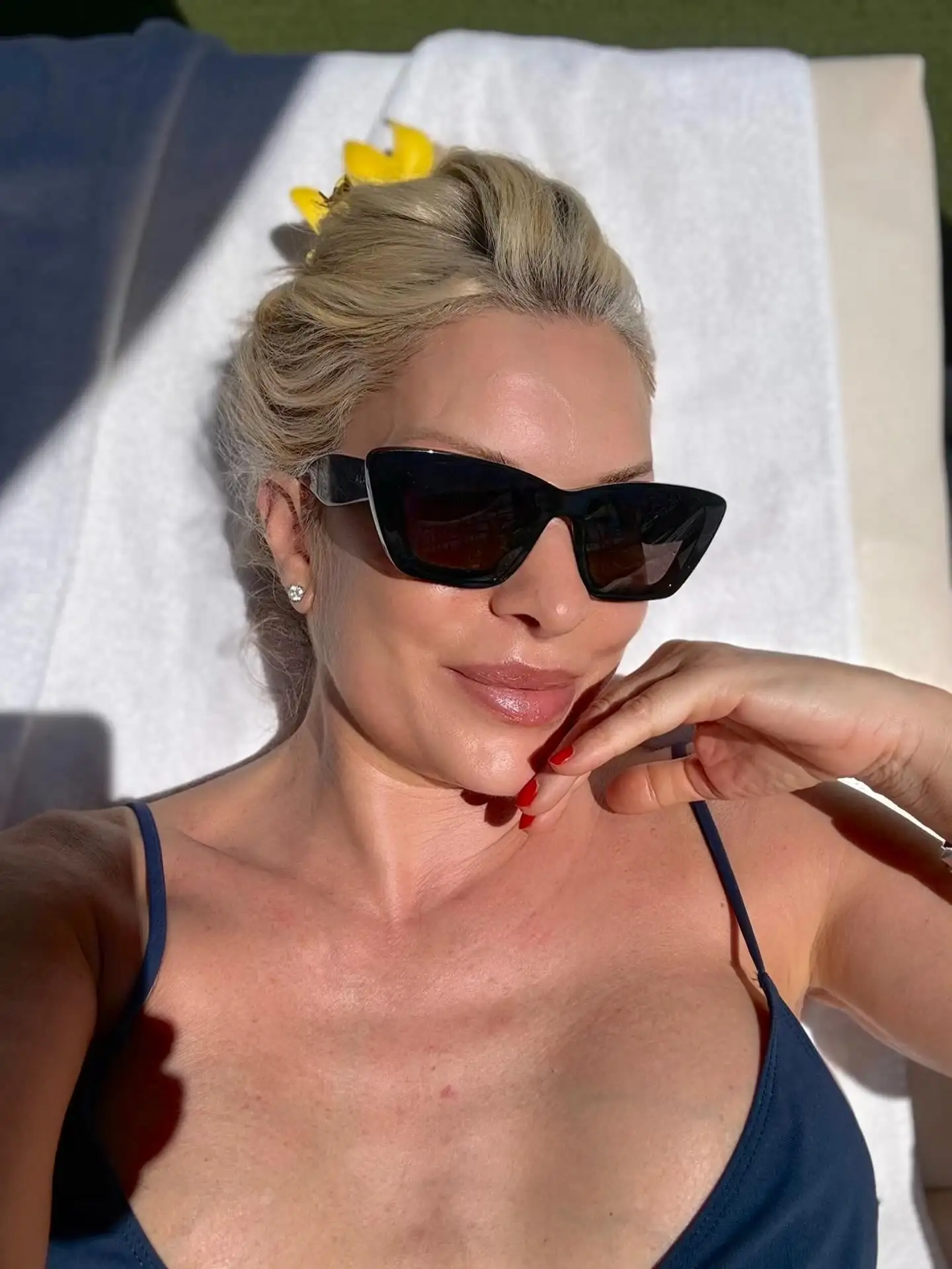 Ξαπλωμένη στην ξαπλώστρα, με το φως του μεσογειακού ήλιου να «ζωγραφίζει» το πρόσωπό της, η Ελένη δηλώνει πως «το καλύτερο μακιγιάζ είναι του ήλιου και της καλής διάθεσης». Και πράγματι, στις φωτογραφίες που ανέβασε, η φυσική λάμψη της και το χαμόγελό της επιβεβαιώνουν τα λόγια της.