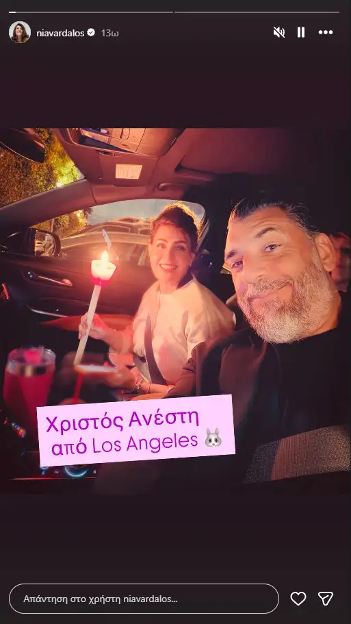 Λίγο αργότερα, η ηθοποιός ανέβασε και μια φωτογραφία με τον σύντροφό της μέσα στο αυτοκίνητο, κρατώντας το Άγιο Φως που μόλις είχαν παραλάβει. «Χριστός Ανέστη από Λος Άντζελες», έγραψε, συνδυάζοντας την παράδοση με την αβίαστη coolness της Καλιφόρνια.